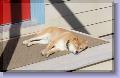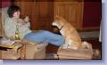 A few weeks after arriving in Colorado, we decided that Taifun needed a companion; we spoke with Pam who told us she had special little Shiba who was very sweet but had suffered some bad luck and been in and out of her kennel. He was Taifun's half brother, a year older and very accommodating. We agreed and Sammy was flown to Salt Lake City where we met in the Luggage Terminal Office. When I opened his cage, cautiously, he licked my hand and I put on his leash. He came out of the cage and never went back. That night he slept on the bed with Irmi, Taifun and myself.. Sammy was a great traveler; he would fall asleep within 5 minutes of getting in the back seat. He didn't care where he was as long as his brother and people were with him. I always said that Sammy would storm Hell with a bucket of ice to stay with his people. Sammy deferred to Taifun when they met new people; Tai was the meeter and greeter, but after 30 seconds he moved off and then Sammy would remind them that he was there and wanted to be petted. Sammy would sit/lie for hours next to some one willing to pet him. Tai stayed close but just out of reach. Sammy was always a bit more independent than Tai; a few weeks after he came to us, he bolted through an open gate after one of the many cats near us with Tai in hot pursuit. I called to them and Taifun returned, unusual in a Shiba. Sammy disappeared and we spent hours searching for him on the canyon rim, (mountain lion country). He showed up several hours later, totally unconcerned. For the next 10 years we took Taifun and Sammy on all our RV trips: Bisby and Tombstone (13) , Grand Canyon North(14) and South, Las Vegas (15) , Bryce, Zion(16), Arches, Canyon Lands, Mesa Verde and on Jeep trails in the Rockies(17) yellowstone, badlands. The Shibas were always with us. Sammy was always a good (relaxed) traveler; Taifun, however, became increasingly anxious riding in the truck and was usually exhausted at the end of each travel day and immediately collapse and slept in the RV. Sammy's only real concern seemed to be "not to be left behind". He showed real fear the first time we went to the vet, but relaxed once we returned him to the car. As it became increasingly clear to him that we were truly his furever home and family, he became absolutely comfortable in whatever surroundings he found himself. In later life, he would fall asleep during his acupuncture sessions. It should be noted that Sammy was never alone for the rest of his life after Salt Lake City. I called him my little "Boll Weevil" because he came lookin for a home and he found one with Taifun, Irmi, and Scott. Sammy passed in his sleep, as he had lived much of his life, lying next to Irmi. Please also visit Joshi (We-Sedso Joshe). |