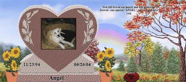 all the dogs in our family, you were always the best. Not only were you so beautiful with your white coat, but your tenderness made you so lovable. My precious Angel, You were in my dreams last week. Because my mind isn't what it used to be, all I can remember is me & you lying on the couch @Garvey Drive as we did so often. And again, I spent the most time with you than any other dog in the family. I hope you are happy. Love, Mom Mom