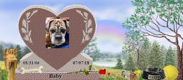 Dear Baby, you are truly gorgeous. Please go to the Bridge and send your precious love down the Rainbow straight into the hearts of your mom and dad who miss you so much, and they will send their love right back to you on angels' wings. Dear Jodi and Ted, your world has lost a very special furperson, family member and friend, and heaven has welcomed Home a very special soul. Baby is now your very own angel, watching over and for you, just as Tashi, Katy and BG are watching over us, until you meet again and cross the Bridge together. May his sweet presence continually nuzzle your hearts until then, and may you find comfort in knowing that the silver thread of love that binds you heart to heart with Baby will never be broken. Many blessings and much peace, Clare and Martha...Please visit our Tashi at http://www.rainbowsbridge.com/residents/TASHI002/resident.HTM