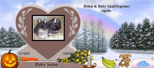 Oh, I have just read this page, and what a special little girl Baby Saint was and always will be! How can people be so cruel is truly beyond me; but oh, she did not let anything stop her, did she, the brave little soul, and her sweet Mummy Helen. I would like to give you all the hugs in the world, Maysie, you're a wonderful, caring person, and I can tell you loved her and all your rescue rabbits dearly. I'm so sorry for your loss; it is hard, especially after everything you went through, the poor dears, and bless you for caring for them. I know your heart is broken, and I know nothing can bring her back, but you are not alone. I hope life is kind to you, and thank you for visiting Pipkin. I'll bet he's teaching Baby Saint how to binky right now, the darlings.