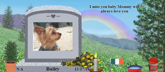 Dear Bailey, you are truly handsome. Please go to the Bridge and send your precious love down the Rainbow straight into the heart of your mom who misses you so much, and she will send her love right back to you on angels' wings. Dear Brenda, your world has lost a very special furperson, family member and friend, and heaven has welcomed Home a very special soul. Bailey is now your very own angel, watching over and for you, just as Callie, Tashi, Katy and BG are watching over us, until you meet again and cross the Bridge together. May his sweet presence continually nuzzle your heart until then, and may you find comfort in knowing that the silver thread of love that binds you heart to heart with Bailey will never be broken. Many blessings and much peace, Clare and Martha...Please visit our Callie at http://www.rainbowsbridge.com/residents/CALLI052/resident.HTM
