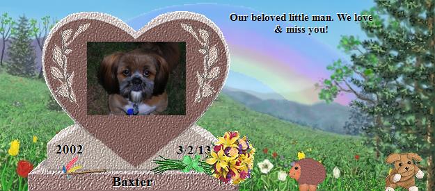 "God gave us our memories so that we might have Roses in December." a quote by J.M. Barrie. May the memories of your blessed furangel, the ones that can't help but bring a smile to your face and a chuckle to your heart as you remember how your baby’s paw prints touched your life, be the ones that bloom in your heart this Holiday Season. My prayer for all of us this Christmas season, is that each of our babies wrap up a special little sign for each one of us back here, and send it to us during this blessed season. May you catch a glimpse of your special sign, just when your heart needs it the most....And may each love-filled memory you have of your beloved Baxter bring to your heart the very warmth and sunshine of the Rainbow itself. That's just one "gift" your baby-angel would want for you this year...Best wishes for you and your family this Holiday Season, Karen (Dusty, DJ, Patches, and Momma’s mom) http://RainbowsBridge.com/residents/DUSTY101/Resident.htm