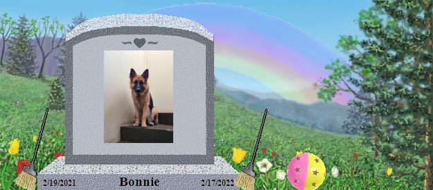Dear Bonnie, you are truly beautiful. Please go to the Bridge and send your precious love down the Rainbow straight into the heart of Yohaness who misses you so much, and much love will be sent right back to you on angels' wings. Dear Yohaness, your world has lost a very special furperson, family member and friend, and heaven has welcomed Home a very special soul. Bonnie is now your very own angel, watching over and for you, just as Jackie, Callie, Tashi, Katy and BG are watching over us, until you meet again and cross the Bridge together. May her sweet presence continually nuzzle your heart until then, and may you find comfort in knowing that the silver thread of love that binds you heart to heart with Bonnie will never be broken. Many blessings and much peace, Clare and Martha...Please visit our Jackie at https://www.rainbowsbridge.com/residents/JACKI010/resident.HTM