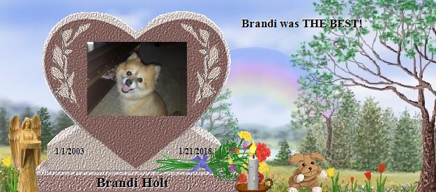 Christy, I’m sorry for your loss. Know that you are not alone. I, too, have lost a beloved pet; everyone in this website have. We know you’re hurting, and we’re here for you. We feel the pain that you feel; we’ve suffered the loneliness that you suffer, at not having our beloved pet by our side anymore. But we all feel the same relief---that where our beloved pets are now, they’re safe, and happy, and content, whatever afflicted them in this life is gone. And we all share the same hope---one day, we will be together again with our beloved ones. Brandi will never be forgotten; each time the world celebrates New Year, that was the day Brandi was born.