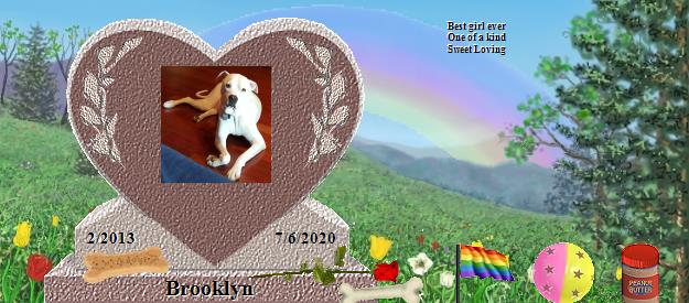 Brooklyn was a beautiful special dog that gave so much joy but also enjoyed her life to the fullest her parents took the best care of her and she knew it and appreciated it . May she Rest In Peace in heaven with all the beloved animals