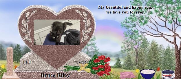 Bruce Riley, you seemed like such an amazing soul. You and Shawn were lucky to have each other. I know that you are watching your family from over the rainbow bridge, and one day you will all see each other again. Enjoy playing with all the other kitties who have crossed over with you, and thanks for having been a beautiful soul on this earth