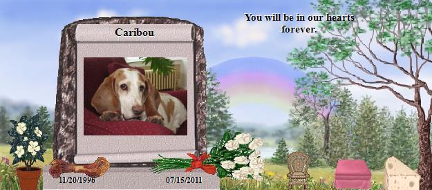 John and Trent, so sorry for your loss. Saying goodbye is never easy.....those little furry companions definitely steal our hearts and souls. They are so precious and are truly one of God's greatest gifts. Take comfort in that their love for us goes on as our love for them does for eternity. I am sure that the memories of this precious member will be with you always. We also lost our adorable little pug, Nikki Mae, who was the light of our lives for more than 14 wonderful years. We are sure that beautiful Caribou and Nikki Mae have become good friends and are now having so much fun playing and running again. Please visit our Nikki Mae at: http://RainbowsBridge.com/residents/NIKKI115/Resident.htm