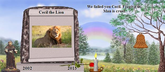 I'm so very sorry and deeply touched for what happened to magnificent Cecil. Indeed, mankind is cruel. How can anyone be like that. -- I am very glad to see he has a residency here at Rainbows Bridge. I have 6 kitties here too and would like to add a memorial to Cecil also.