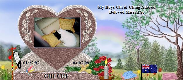 Chi Chi, What an adorable baby you were, always so loyal and loving.You taught and gave your mommy so much that she now knows the true meaning of unconditional love.She longs for the day to be able to hold you and to look into your eyes again.I know just how grateful you are for all of love and care in which she provided you.She misses you baby, so very much. I know that you don't want her to be sad for too long, but instead, be happy. For you are happy, content at peace and have been surrounded by so many others who also love and adore you, including my Shayna Girl and Leche.I extend my deepest condolences to you for the loss of Chi Chi.I know just how painful it is to have lost your angel, for, I too, lost mine. Please vist my Shayna Girl at: http://rainbowsbridge.com/residents/SHAYN005/Resident.htm and Leche at http://www.rainbowbridge.com/residents/LECHE001/Resident.htm My thoughts and prayers are with you. Until we are with our babies again. Shayna and Leche's mommy, Lisa