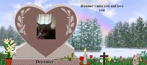 Dear Dreamer, how purrfectly gorgeous you are! Please go to the Bridge and purr your precious love down the Rainbow straight into the heart of your daddy who misses you so much, and he will send his love right back to you on angels' wings. Dear Jeremy, your world has lost a very special furpurrson, family member and friend, and heaven has welcomed Home a very special soul. Dreamer is now your very own angel, watching over and for you, just as Jackie, Callie, Tashi, Katy and BG are watching over us, until you meet again and cross the Bridge together. May his sweet presence continually nuzzle your heart until then, and may you find comfort in knowing that the silver thread of love that binds you heart to heart with Dreamer will never be broken. Many blessings and much peace, Clare and Martha...Please visit our Jackie at https://www.rainbowsbridge.com/residents/JACKI010/resident.HTM