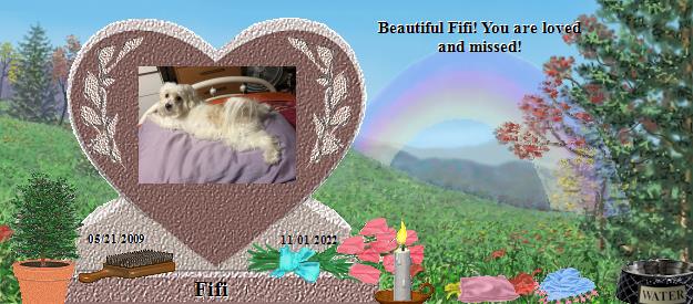 Dear Fifi, how truly beautiful you are! Please go to the Bridge and send your precious love down the Rainbow straight into the heart of your mommy who misses you so much, and she will send her love right back to you on angels' wings. Dear Arielle, your world has lost a very special furperson, family member and friend, and heaven has welcomed Home a very special soul. Fifi is now your very own angel, watching over and for you, just as Jackie, Callie, Tashi, Katy and BG are watching over us, until you meet again and cross the Bridge together. May her sweet presence continually nuzzle your heart until then, and may you find comfort in knowing that the silver thread of love that binds you heart to heart with Fifi will never be broken. Many blessings and much peace, Clare and Martha...Please visit our Jackie at https://www.rainbowsbridge.com/residents/JACKI010/resident.HTM