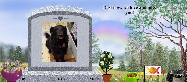 Dear Fiona, you are truly beautiful. Please go to the Bridge and send your precious love down the Rainbow straight into the hearts of your mommy and daddy who miss you so much, and they will send their love right back to you on angels' wings. Dear Gilbert and Valerie, your world has lost a very special furperson, family member and friend, and heaven has welcomed Home a very special soul. Fiona is now your very own angel, watching over and for you, just as Callie, Tashi, Katy and BG are watching over us, until you meet again and cross the Bridge together. May her sweet presence continually nuzzle your hearts until then, and may you find comfort in knowing that the silver thread of love that binds you heart to heart with Fiona will never be broken. Many blessings and much peace, Clare and Martha...Please visit our Callie at http://www.rainbowsbridge.com/residents/CALLI052/resident.HTM
