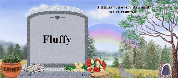 I've just lost my dog who is also named Fluffy. I'm sure our pets are in peace now and playing together while waiting for us to join them eventually.