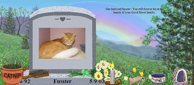 GOOD MEWS ON THIS THE 9TH ANNIVERSARY OF YOUR CAT FUSSTER PASSING I SEND YOU BOTH MY CONDOLENCES