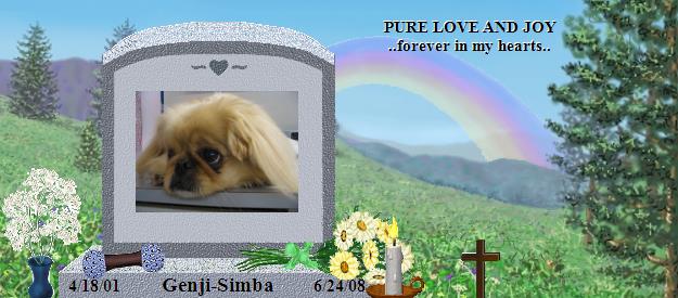 To Genji-Simba, a new angel at the Rainbow... Each time you look up and see that wondrously magical Rainbow, just know that your family has actually helped make it shine a little brighter. How? With their tears, sweet baby. Each of their love-drop filled tears have mixed with the sunshine there at your new home, and your Rainbow there shines even brighter for you now.... An old Indian proverb: "The Soul would have no Rainbow if the Eyes had No Tears" says it best... You now find rest in the Arms of the Angels...what more could your family have ever wished for you? What more could they have ever wished.......And to Evelyn & Chris, I'd like to add a quote for you, too: "Perhaps they are not the stars, but rather openings in Heaven where the love of our lost ones pours through and shines down upon us to let us know they are happy." ~Author Unknown~ from Dusty's mom