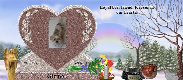 Happy birthday Gizmo! You were born 2/10/1999. Love and miss you always. Dad