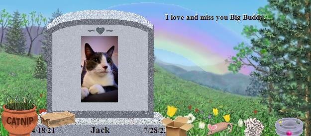 I am so sorry to hear about your loss of Jack. Please find comfort in knowing that Jack is now at Rainbows Bridge and making lots of friends. Saying goodbye is never easy. I also lost my precious cat Spooky July 30th, 2001, after 16 wonderful years with her. I have lost several babies since Spooky's passing. Hannah 1/11/13, Sammi 8/2/13, Maci 4/9/14, Gabbi 3/20/17, Zoe 1/3/18, Willow 6/4/18, Shelby 6/12/18, Bear 11/17/19, Bella and Murphy who were both tragically poisoned on 06/18/20, Firefly 12/20/22, and Zachary 02/19/23. I am sure that Jack and my babies have all become good friends. You can visit with Spooky at: http://www.rainbowsbridge.com/residents/Spook002/resident.HTM Take Care, Susan