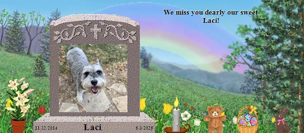Dear Laci, you are truly beautiful. Please go to the Bridge and send your precious love down the Rainbow straight into the hearts of your family who miss you so much, and they will send their love right back to you on angels' wings. Dear Dina, your world has lost a very special furperson, family member and friend, and heaven has welcomed Home a very special soul. Laci is now your very own angel, watching over and for you, just as Fritz, Jackie, Callie, Tashi, Katy and BG are watching over us, until you meet again and cross the Bridge together. May her sweet presence continually nuzzle your heart until then, and may you find comfort in knowing that the silver thread of love that binds you heart to heart with Laci will never be broken. Many blessings and much peace, Clare...Please visit my Fritz at https://www.rainbowsbridge.com/residents/FRITZ021/resident.htm