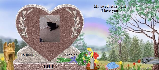 Hi LiLi, I love ❤️ & miss you so much! I can't believe it's 2 years today since you went to the Bridge. Such a hard & terrible day but, I did it because I loved you & didn't want you to suffer. Believe it or not, I feel your presence many times during the day. I will write a longer note on your residency page. I miss you, my sweet stray girl! Love always, Mommy xoxo