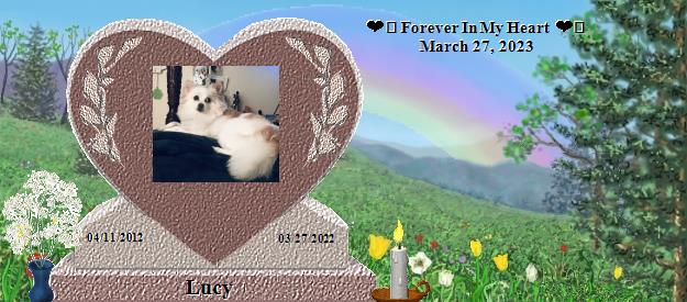 I am so sorry to hear about your loss of Lucy. Please find comfort in knowing that Lucy is now at Rainbows Bridge and making lots of friends. Saying goodbye is never easy. I also lost my precious cat Spooky July 30th, 2001, after 16 wonderful years with her. I have lost several babies since Spooky's passing. Hannah 1/11/13, Sammi 8/2/13, Maci 4/9/14, Gabbi 3/20/17, Zoe 1/3/18, Willow 6/4/18, Shelby 6/12/18, Bear 11/17/19, Bella and Murphy who were both tragically poisoned on 06/18/20, Firefly 12/20/22, and Zachary 02/19/23. I am sure that Lucy and my babies have all become good friends. You can visit with Spooky at: http://www.rainbowsbridge.com/residents/Spook002/resident.HTM Take Care, Susan