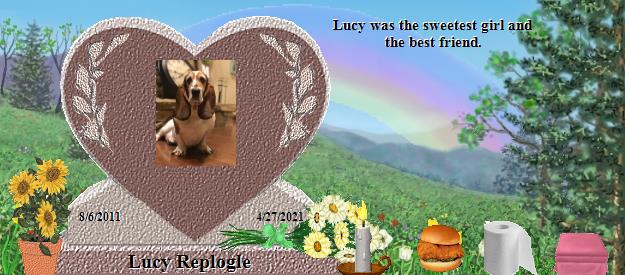 Dear Lucy Replogle, you are truly beautiful. Please go to the Bridge and send your precious love down the Rainbow straight into the hearts of your mommy and daddy who miss you so much, and they will send their love right back to you on angels' wings. Dear Victoria and Ryan, your world has lost a very special furperson, family member and friend, and heaven has welcomed Home a very special soul. Lucy is now your very own angel, watching over and for you, just as Jackie, Callie, Tashi, Katy and BG are watching over us, until you meet again and cross the Bridge together. May her sweet presence continually nuzzle your hearts until then, and may you find comfort in knowing that the silver thread of love that binds you heart to heart with Lucy will never be broken. Many blessings and much peace, Clare and Martha...Please visit our Jackie at https://www.rainbowsbridge.com/residents/JACKI010/resident.HTM
