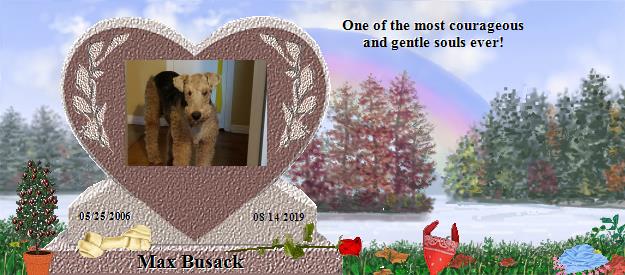 Cheryle: No words can ease your pain, but your loving memories of Max Busack will live in your heart forever. He was truly loved.