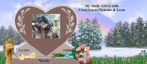 My Little Molly, Oh how I miss you. I look at your picture everyday. A tear still flows. Be at peace my little one. Hugs to you, Lexie, Casey, Luke and Nicholas.
