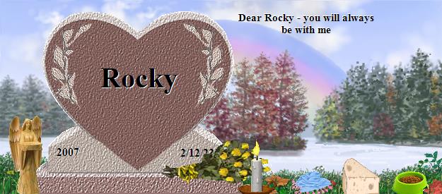 Dearest darling Rocker 💖💖 I love you forever and ever Please don't forget me I won't forget you Watch over Max and Bobby and Casey and the diddles. You are my heart and my heart's darling my life and my best friend and my little invalid boy made whole again and my good boy forever. Yes my good boy forever.Eat lots of ice cream and peanut butter and keep our little house warm. Blow kisses on the breeze and spin. I love you forever and ever. You were my protector and never let me down. I miss you too much and even though I know you are safe and warm in heaven I wish you were here with me. Love from your Mommy who misses you terribly. Locor