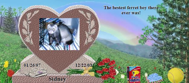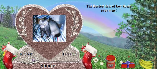 http://rainbowsbridge.com/residents/BRAND167/Resident.htm - Sidney leaves this message with you, "I send my blessings every day and remember that I love you very much. By the way, I am in heaven but wherever there is love, I am there also.