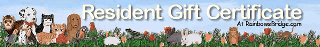 You will choose the Residency Stone and where in Rainbow Bridge your Baby will reside. You can place toys, treats, flowers, shrubs, or a candle at your Babys residency. You can provide stories of the special memories you have as well as have a picture placed on the Residency Stone.