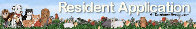 A portion of each Memorial fee is donated to a rescue shelter ...read morewith the hope that together we can help provide a better life for those animals less fortunate than our Babies who are still with us. The fee for a Rainbow Residency is twenty-five dollars per year.
