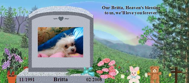 Britta's Memorial Rainbow Residency Gift Renewal at Rainbow Bridge