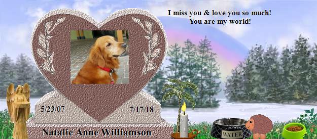Natalie Anne Williamson's Memorial Rainbow Residency Gift Renewal at Rainbow Bridge