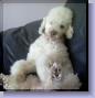 Andy was picked up stray with another dog by animal control. They were in the pound for a month and then sent to the Georgia SPCA. They were so dirty and matted that the people at the pound thought he was a Bichon (he is a poodle). The 2 dogs were so filthy and raggy that the SPCA named them Raggedy Annie and Raggedy Andy. They looked so bad they had to be shaved down. Greg and I were volunteering there and saw these 2 little cream-colored poodle dogs in a cage. And that is how I met Andy. Dear Andy, When you were in the shelter, I would take you out to walk you during my shift and you would be so excited you would jump 6 feet into the air and twirl around with happiness. When it was time to go back into your cage you would dig in your heels and did not want to go back in. Once Andrew and I walked you on the Greenway. We had no idea you would be our dog one day. You always hated going back into that cage! Your photo on Petfinder was pitiful and no one was adopting you. One day your best friend that you came in with, Annie, got adopted. You were so scared and felt so alone that the director of the SPCA asked me to foster you at my home because you were very upset at the shelter without Annie. I brought you home and from that moment you never let me out of your sight. You were good as gold too. I thought I would let your fur grow out and get you a proper groom and then take you to an adoption event. But you started to grow on me and 2 weeks later your adoption was official. You met our other miniature poodle, Skippy, and you two were not such great friends, but learned to like each other okay. He misses you now that you are gone. You followed me from room to room; you were my shadow for ten years. You were afraid of the broom and any stick like object and I always wondered if you were hit. You were afraid of Tommy, who was 15, but very tall, and you wouldn't pass by him in the hallway. You were afraid of men. Every time I got the leash out to take you outside you would jump so high and twist and wiggle and I would say "you can go out whenever you want now, no need to get so excited!" You loved to be petted and would push anyone's hand with your nose by nudging it, so that one of your nick names was "The Nudge". You loved chasing squirrels from our deck. I would yell Squirrel and you would run outside to chase it. After awhile you and Tommy became the best of friends and you loved each other. You never got over your fear of brooms but you were happy otherwise being free from abuse and cages. We gave you a home and in return you gave us your whole heart. I will never forget you and miss you terribly. I miss your soft fur on my neck. I miss you sleeping in the crook of my arm. I thank you for making me happy and comforting me for ten years. I love you and miss you.
