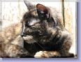 May 2010 For years I wished on the moon for you, my little kitten with bright green eyes; you were my dream come true. An unexpected gift given to me from some friends who realized just how special you are turned into a lifetime of our love and joy together. Every day you would greet me at the door and before supper you would tell me about your day. Then you ran your circuit around the house: litter, post, couch, and out the door and back all over again. My little meiu, when you were younger, during the times I studied at the table you came and sat right down in the middle of all my books to become the center of attention. I always tried to work around you, enjoying your company even when I was focused on my work. Some times when in serious concentration you would get all scratchy and bitey with me, and I would be reminded of the importance of play. Gladly I would pick up one of your many toys and we had the best time ever as you chased me and the toy around. When you were older and I was working at my desk you would jump up and sit off to the side purring away to let me know you were there, and wait for me to pet you and kiss your beautiful face. Then as night set in, unless it was a full moon, my kitty-pie, you would cozy up to me wherever I was, and sing your purring song. If it was a full moon, you called to go out until I let you, then I would go out with you and together we enjoyed the serenity of the beautiful night. You taught me the magic found in the beauty of nature. At bedtime I would rouse you just enough that you would let me pick you up and bring you to my bed where you would begin kneading your paws in the purple wool blanket my savta made me. It was then that you taught me that although I wanted to pet your beautiful fur as we were there purring away on the blanket, you needed some space to enjoy yourself, and so I learned to restrain myself from treating you as an object, realizing your individuality and need for self determination. So I curled up near you, careful to not bump you and I would fall asleep almost every night listening to your wonderfully rich song as you cozied up to me. In the morning when the first birds woke, you would be sitting there purring away again, batting your little paw at my face or scratching something to wake me up so we would have time together before I went off to work. In the warmer weather we spent time in the garden together soaking up the sun, and smelling the plants growing around us. I always wanted for you to have the freedom to come and go as you chose whenever possible, you are a free spirit and I was just honored to know you. I would let open the sliding door for you to run out and you would disappear under the fence, returning an hour or so later, bounding in full of joy and pizazz, and I would say, "Hi Baby, there you are!" Although there was many a time that you disappeared mysteriously for hours, to the point that I would be worried about you and calling your name over and over around the block, "Aura, Aura..." only to come back to the house and you would be sitting there in the garden all innocently sweet. Then I would ask you "where have you been?" and say, "I have been worried sick about you," and you would just purr away. Sometimes I would return home so tired and take a nap on the couch, and you always watched over me, often curling up next to me or at my head. I loved the feeling of your love and energy as you curled up to me, I loved how you so patiently waited for me to wake up. When I opened my eyes they would meet yours and find you beaming your sweet kitten love down on me. Each day was special and every day I held you tenderly, and kissed you telling you how much I love you, and feeling appreciation for the blessing that you are. I miss you dearly my sweet Aura kitten. You are the best thing that has ever happened to me in this life, an answer to my prayers. Dear Aura, please know that you will always have a home with me, and forever be in the hearts of everyone who had a chance to know you. Thank you for sharing your time on Earth with us, and for blessing us with your presence. I am truely honored to have known you. I look forward to the day we meet again my kitty-pie. Aura, I love you forever and a day.May 2012 My dear Auracita, I still miss you very much and wish that things could be different and that you were still with us here on Earth. By now you've probably met up with our former favorite neighbor Ellen, your good friend Sweetie's mom. She joined your side around this time last year. Ellen was very fond of you; I hope that you're taking good care of each other. Sweetie moved to another city so I see her once in a while. I heard that she's doing really well, making the most out of her new homestead and family. Don't worry if she ever needs anything I am here for her. After your departure I started volunteering with VOKRA, a feline rescue group. Then I fostered a few of your feline brethren, one of whom we adopted at K's insistence. I have a feeling you probably already know about him and how he is really not a bit like you at all. You should know that Liney is a very decent sort yet you will always have your place with us; he can never replace you. My dearest Mieu, every time I see the little birds outside I am reminded of your charisma, beauty, and grace. The sparkliness of your green eyes and the bounce in your step, the love in our embrace. And although I am still dealing with the pain of losing you as though it was yesterday that you left.... I am becoming more comforted by memories of our time together. Sometimes I even feel as though you are near me -maybe it's just being wishful yet I am almost certain that you have come to visit me a few times...Thank you. My sweet Aura, as always, I will love you forever and a day. I almost forgot to tell you another thank you because of you I have pictures of the patio planter from before the construction workers destroyed it so I can use them in court. Also, th