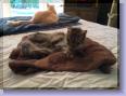 | 2/17/2006 I came to Texas to start a new life in a new city. I picked up the paper and read about a cat show. I had never been to a cat show and decided to go. I knew no one in town and went by myself. I walked through all the prize cats and was amazed by the beautiful pure breeds on display there with their proud owners at their side displaying all the awards they had won together. As I continued to walk I spied in the back of the room cages not like the cages of the proud owners. They were old used cages and there you were in a beat up old cage with a big blue ribbon. Winner of the mixed breed division. You were about six months old and a ball of black fur. As I read the message on the cage it read you were residing at the Animal Defense League and were adoptable. I was one of the few looking at you and you picked your head up from your slumber and looked at me with the biggest bright yellow eyes. You were shy but you still spoke to me. I fell for you right then and there. I inquired about you and they said that I had to prove I was a good pet owner. They had me fill out forms and they told me I was not suitable because I had just moved here and had no vet and had no permanent place to live yet and so on and so forth. I stayed with you and watched other cats get adopted and told everyone who came by that I was trying hard to get you but it was to no avail. They picked up your cage and placed it in their van and drove away. I was heartbroken that I was deemed a bad pet owner because of their standards. Then it occurred to me to find my old vet in Florida. I could not remember her name. Then late that night it came to me. I found the Animal Defense League in the phone book and bought a map of San Antonio and drove myself there. When the doors opened I rushed in and said I could prove I was a good pet owner. They took my old vets name and asked for my phone numbers and sent me away. I heard nothing from them and then the following day they called and said they spoke with my vet, asked if I had a home yet and I said yes. Come on down Miss Vaillancourt and pick up your new pet. We moved into our new place together you and me. You were a one person cat. A beautiful baby. The smartest cat I'd ever know. You could fetch and loved to do so even though as you got older you would not put up with me throwing the ball 40-50 times in one sitting. I looked over my bed today and your soft ball was laying there on the floor and my throat tighten. It was not there yesterday so Q must of gotten and brought it there even though I have never seen him touch it before. I will put it with you so don't you worry. I use to love it when I woke up and your ball was lying on top of me or next to my side. I would always think I wonder how long she has been trying to wake me to throw this ball. I always thought you were so special and smart the way when I was working you knew I was ignoring you because I could not get any work done with you continually going in and out the door every two minutes. You trained me very well. If I did not answer your meows or scratching at the door you would go get a piece of paper and jump on it then run frantically to the door as soon as I looked at you tearing up that paper. Or beating on the blinds on the other side of the room when I did not pay attention to your every need. I have been trained not to put the toilet seat down and my friends always wonder why you would cry so loud pacing back and forth down the hall. I would just yell out to them to raise the seat. I could never quite break you of that habit. But if I were a cat I would want cold water too. I loved the way you used to lay on my pillow and nibble my fingertips right before we fell asleep. And I loved the sound and rhythm of your purr. I loved that we finally bought a real house with a yard. No more crawling on the roofs of the various apartments we lived in. I loved that you knew where we moved without my telling you. Just throw the rug on the doorstep and you knew it was our new home. I loved that you were not scared of raccoon. I loved that you were a food connoisseur. I tried to trick you with a few new pieces of science diet but you could not be fooled. I think I through out more food than you ate. I hope the tuna is packed in spring water for you now. Because we still have to watch your diet. More than anything I loved the way you would put your forehead against mine and press it there and in silence we read each others minds. I love you with all my heart my dearest sweet B you will never be replaced in my heart. You are my kitty soulmate if ever there was one for me. This is not goodbye or farewell. It is bon suisse mon petit sho sho. Je t'aime mon B B. 2/19/2006 B baby it has been a week and I have cried for you everyday. Q says MEOW!!! I know he is still very loud. I love you and miss you terribly. It is Sunday and I missed you tonight during our Sunday TV day. I hope you are happy my beaver.....Two weeks the longest time I ever spent away from you. One full week before remember I even had to check on you in between my trip to California and back stop in San Antonio hug you a few times then off to my cruise. I know this drove Mike crazy. I hope both Mike and Chip are holding you temporary till I get there. I loved all of you but B you had my heart. I need to request "Back in Black" from AC/DC for your residency. You were a real rock & roll kitty. Guess what I got yesterday for Q a catnip blanket. I would of gotten you one if I knew they existed before. He loves it. Of course he says hello. I love you my dear beav. 8/4/2006 Hello sweet B. The house is still empty without you. I now have a herd of cats as you have seen. You know I got D to keep Q company but they really do not like each other to much. Then along came CC from Barb's gate. Thrown out like garbage and of course you saw how I was not quite use to him and mixed him up with another and have twin cats. I really did think that was him when he ran out
