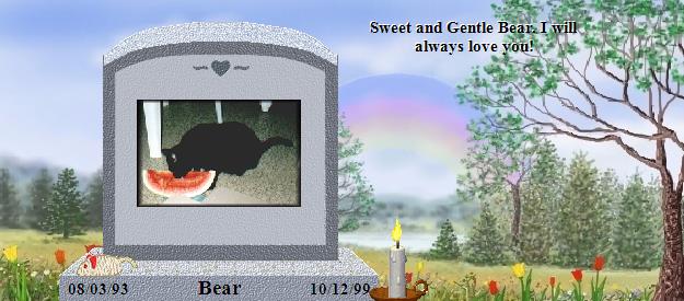 Its been 10 yrs today since you had to leave me. You are always on my mind! You left me with so many memories. 5 yrs ago a black kitten came into my life. I named him Jack. But it seems I always call him Bear Bear :) He is sweet and gentle like you were.