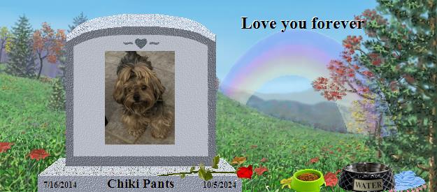 Welcome to Chiki Pants's Rainbow Bridge Memorial Residency