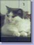 My dear sweet darling Dallas Starr Sinclair, our kitty from a story book, began her fairy tale life with her sister Laura Jane Sinclair on July 1, 2000. We had just moved into our current home a few months prior and hadn't been able to take our beloved cats with us, and we were lonely and heartbroken. Even though we were adjusting to our new life, the house had yet to feel like a real home because it was missing the special love that only pets can bring. Enter Dallas Starr Sinclair! Born under our neighbor's house, Dallas was discovered with her baby sister Laura, a brother,and her sweet Mama Katie to whom we are eternally grateful for entrusting us with her precious kittens! To say it was love at first sight is an understatement--Dallas's fate was decided the second we laid eyes on that gorgeous little face with its beautiful high cheekbones and slanted green almond eyes. Her fur coat was almost as beautiful as her stunning little face--super fine, fluffy, with a cotton candy-like texture, a combination of charcoal gray and pure bright white. I loved to squeeze her fat little pink paws and feel the white silky tufts of hair between her toes! Dallas was an incredibly curious, high energy kitten who always wanted to be a part of everything going on in the home. She adored anything that sparkled, like marbles, beads, and crystals, the colored curling ribbons you would put on a present, and always wanted to know what was in shopping bags if we came home with any. She also loved the clinking sound of coins, and was even a featured pet in my bank's annual calendar one year! Yes, Dallas Starr was quite the "glamour puss" and "Pin-up cat", and seemed to enjoy having her picture taken. Because she was so incredibly beautiful, I took her picture often. I used to think Dallas would have made a terrific pet model, but as she grew older her she was less calm around strangers and didn't like leaving the house much. While that ended my dreams of stardom for her, Dallas remained my favorite "super model" for years to come. Even her walk was a bit sensual and unusual for a cat--rather seductively, she would cross her two paws one in front of the other as she strutted around, causing everyone to take notice of her. I like to think Dallas knew exactly what she doing, and wanted it that way too. Dallas's beauty had a quality I've seen in only a few other cats--it was incandescent, as if a candle were always lighting her up, giving her a rich, creamy look.She truly loved attention, and loved being adored. Dallas could never get enough love, and lucky for her, we never ran out of love to give her! She was also an amateur thief, "stealing" household items like kitchen sponges or socks and giving them as "gifts" to various family members. Dallas had a true sense of mischief, and delighted in being "naughty", even though it was never anything truly bad. She just wanted to cause a big commotion in the house and have everyone come around and give her more attention! One of her favorite "naughty" things to do was to climb up the drapery in the living room and sit on the curtain tops, teasing us with her stare and daring us to come and get her. At first we would give in and climb on the sofa to get her, but we soon found that a quicker way to get her down was to leave her alone in the room and not make a big deal out of it. That was no fun, of course, so she would hop right down of the drapes and go about her business again like nothing every happened. That silly girl! She was always so much fun, one of the funnest, most lively cats I have ever known. She was so completely charming, you just couldn't help but love her. Dallas was so full of life and so intelligent--I know she knew how much she was loved and cherished by us. I always thought of her as a treasure, a perfect, gleaming diamond I was determined to protect and care for as long as I could. I like to think that we did exactly that for her as well, and that we made her as happy as she made us. For all these years of her life, no matter what kind of day I had or what was going on , Dallas always made me smile, made me happy. I was happy to think that I was coming home to her and that she would be there. I loved her as more than a pet. To me, she was like a daughter, a child to love. She was my "fur baby." I loved petting her soft fur, carrying her around like a proud mother. I loved doting on her and making her happy. It gave me pleasure to please her, to give in to her little whims. That's one of my only consolations about losing her--I know Dallas had a very happy life, and that she loved her life. Every cat, every animal should be as loved and as cared for as Dallas was. From the very first moment we saw her, Dallas was a princess. I will never forget how she loved to be pampered, loved to have her hair combed, and loved to sit in the window sill and let the sun warm her fur. I've had other cats before that I've loved dearly, but Dallas was very special. Not only was she absolutely gorgeous and physically a work of art, but because she was an indoor only cat, we all really got to know Dallas more than some of our other cats. Dallas is now my kitty angel, and I know that I will love her as long as I live. It might sound silly to people who have never really let themselves love an animal before, but if you do, it becomes an incredibly strong bond, as strong as any bond you can have with another human. She was always good, always true, always loving, and never disappointed me. Dallas was always a terrifically healthy, vibrant cat until the winter of 2011, when she became lethargic and seemingly lost that sparkle she always had. Dallas just seemed not her self, but didn't cry or appear to be in pain. Though she was never a big eater, she stopped eating almost completely and began losing weight. When we took her to the vet, we learned she had severe inflammation of the pancreas. We immediately began treating her for the illness, but she was not able to recover