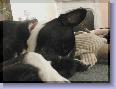 Frankie was adopted by us in 1995 from the New Rochelle Humane Society. He couldn't walk due to two luxated patellas (knees), but the operations were common and his chances for a normal life was very good. A fund raiser was held before we knew of him and over $6000.00 was raised to pay for his surgeries. We adopted him and nursed him through the two operations. We drove him to Manhattan for 19 weeks for each operation on weekends to go to physical therapy. Frankie needed two more knee operations after the initial two. These were needed to repair torn ACL's he got from a few falling accidents. Physical therapy was also provided for his rehabilitation. I drove him to Manhattan so he could go swimming with a physical therapist specializing in dogs. Frankie also had numerous other other operations, e.g., 2 bladder operations to remove bladder stones, a cancerous anal gland mass, liver tumors, a tumor in his pituitary gland that was neutralized by Cyber Knife. Frankie was treated for many health issues such as laryngeal paresis, bloat, pneumonia, pancreatitis among other things. Throughout all of the above, Frankie stoically took it all in stride as if to say, "ok, I have it...let's deal with it and move on". He wasn't a complainer. He was a real trooper. He had a zest for life and wasn't going let physical impediments stand in his way. Frankie was a loving, smart, loyal, playful, curious, boy with a wonderful sense of humor. He wasn't a food-boy when he first arrived, but I quickly changed that. He loved food in no time, especially ice cream that we had every night. He'd close his eyes in ecstasy as he'd lick the spoon. He especially liked Carvel. Frankie was influenced by the weather. He loved cool dry days, hated the rain, loved the snow, but not the ice that would become stuck between his toes when it became slushy. He would pick up his paws so I could remove the ice from between his toes before continuing on our walks in the winter. Frankie loved getting new toys, especially the big fleece bones. He loved teething on them. They were big pacifiers. Frankie loved new or clean things like blankets, bedding, pillow cases. He loved his winter and rain coats, and even his rubber booties. Frankie loved his human female companion. He wasn't happy until she came home and the three of us were all home. He loved his pack. That's for sure. Frankie loved going for rides in the car, whether it be to the park, the stores to buy things, or even to the veterinarians. The veterinary staff always made such a fuss about him, and he loved the attention he got. Frankie loved going to the park and tracking down squirrels. We would point out to each other where the squirrels were so Frankie could try to get one or two before we came home. Frankie stealthily moved towards each squirrel so as not to disturb it as we inched forward. Frankie hated the "despised" mailman. I taught Frankie the word "mailman" meant that dastardly character who went from house to house and had the "nerve" to trespass on our property. Before we had an external mailbox, the mailman would open the mail slot on the front door and drop the mail in. I once caught Frankie with his mouth open waiting at the mail slot right before the mail was going to be deposited. I always wondered why our mail was perforated. Now I knew! Frankie loved young women. When he was a resident of the humane society where we adopted him from, the majority of caretakers and office workers were young women. They loved Frankie. After we adopted him, every time a young woman approached him on a walk for example, he became very happy to see her even if he had never seen her before. Cats did not appeal to Frankie. If he saw one in the street he'd go ballistic and try to go after it. Fortunately, he was always on a leash when walking. I know Frankie and I will reconnect when I cross the Rainbow Bridge and we will be together forever.