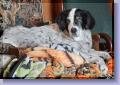 | I picked Skye from a friend's litter of great field trial pups. Her registered name was "Daddy's Little Skye"; a very befitting name. She was a good buddy to find grouse with. She was especially fond of woodcocks. Skye was 17yo, notable for her breed. She now rests with her half-sibling Gunner. |