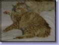 | Hardly ever went out but when she did she always scampered in and flopped down in the middle of the floor to get petted. When we fed the other cats they evening treat they ate on the floor she always insisted to eat on the table. I didnt take many pictures of you I thought you would be the last to go since you allways stayed inside safe. When she drank water she dipped in her foot and then licked it. When she peed on the carpet I never scolded her because she reminded me of her sainted momma which looked just like her. Now there is only one beautiful golden one left of the 4 golden ones and 2 others of her babies. |