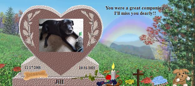 Welcome to Jill's Rainbow Bridge Memorial Residency