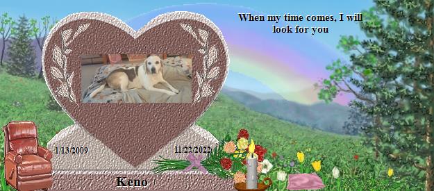 | I love Keno more than words can say. I've never missed or loved something like I do my boy. He saved me in the darkest time of my life. I would've done anything for him. I would've died for him. He is now my angel and make no mistake, I will meet him again one day on the rainbow bridge |