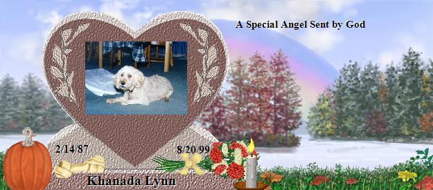| Khanada Lynn -- A very special, honey-blonde, Fur Baby mixture of cocker spaniel, terrier and poodle who shared our life for over 12 years. Khanada possessed a very sweet demeanor and loved to meet new friends. Khanada loved to travel everywhere we went. Some trips were short, just around town. Others took us to places all over Washington State and eastward to Wyoming and the Dakota's. We even traveled north through 4 Provinces of Canada. She always behaved herself and was welcomed everywhere we went. Khanada, we love you and miss you terribly. We know that you belong to God and that you were only ours for a short while to care for and love. You helped Dad through his rehabilitation from by-pass surgery. You were our sweet, sensitive little girl who was also our companion and friend. You loved to lay on the deck in the sunshine and play in the snow in the winter. You brought out the best in us and taught us about Unconditional Love. Khanada, we are sorry that you became ill and were recently diagnosed with Chronic Renal Failure, a silent killer. However, we loved you enough to let you return to God and be with Him. This was our final act of caring for you. This part of the journey is now over for you. May God richly bless you and comfort you in His loving arms. Lots of Rubs and Hugs, Mom and Dad |