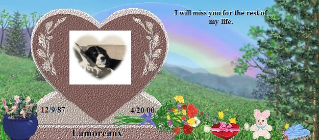 Click here to Email Lisa and Evelyn a condolence, or to send an E-sympathy pet memorial card click here.