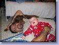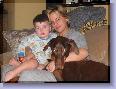 Until one has loved an animal, a part of one's soul remains unawakened - Anatone Frances The things I remember of the most powerful loving dog I have ever met, Major. I met Major when he was 7 years old. He weighed in at 100 pounds. He was absolutely gorgeous. He wore his head up high, had a strong body with beautiful large brown eyes. The most wonderful thing about Major was that he never had his ears clipped and that made him look even more beautiful. He was a purebred Red Doberman, but looked more like chocolate with very distinctive rust coloured features that stood out. He had a beautiful snout and a beautiful smile. I know it sounds like I am talking about a human, actually, there was a lot of human about him. I was a little intimidated by him because he was a big dog with a big bark and I was new in his territory and he made sure to let me know that I knew that. After knowing Major, how could I have ever been afraid of the most affectionate playful and gentle boy he really was. This came shortly after I moved in. He howled to his own song: Majee (pronounced -- May Jee) Bodajee -- Bo Day Jee Majee Bodajee, Fofajee, Rolagee He loved to dance and his favourite past time was to snuggle on the couch. You could talk to Major and have a conversation and he would look at you shifting his face from side to side as you spoke, like he was understanding everything that you were saying. One of his favourite people was Grampa Joe. When you mentioned Grampa Joe's name, he would jump up and grab shoes to tell us that we should be now going to visit Grampa. He also loved to visit Baba (my mother). He did this regularly. He also got excited when we were having visitors. One especially, was a client of mine, Susan D, who he jumped for when he knew she was coming over for a treatment. She loved him. He loved her. He loved his veterinarian, Dr. John. I have never seen a dog so anxious to see his vet. When he got there, he was so happy. We were blessed to have had such a great veterinarian who did a fantastic job looking after Major. He trusted Dr. John and never gave him a hard time no matter what his visit was for. In general, once Major met you, he loved and trusted you. It didn't matter who you were or where you came from, he just loved people who loved him back. Major was one of the most hyper dogs I have ever met. He never sat still and was a little terror when he was a puppy, as Jim would put it, and did as much as he could to get the attention he was looking for. It worked. Doberman's seek attention and they will go to any extent to get it. His demand for it made us love him more. He loved life. He loved his family. He was a very proud dog who protected his family and friends to no end. He made sure that you knew that he loved you and never stopped showing it. His favourite time of play was in the summer and loved to run chasing the Kong. He also spent countless hours in my mom's swimming pool and could never get enough. He loved to go for his daily walks around the block or to the park and walked like he owned the world. We were so proud to have him. He was a very important member of our family. After moving in with Jim, I adopted Major. I owned a cat, but Major was not very fond of him. My cat, Alfie, was another 1/2 human and was my best friend. When Alfie passed on, Major started to warm up to me and we became very good friends. He was my front seat driving buddy and I never left the house without him. We travelled the town every day, in and out of stores while he waited in the front seat for me. It was a blast travelling with my best friend. Tim Horton's was his favourite spot. He knew when I mentioned "Timbits", that he was getting a treat. He cried for Timbits in the car and we thought he would jump out the window to get them as we neared the window. This went on for years. He was complimented by the people working at Tim Horton's everytime on how beautiful he was and always got a biscuit. He certainly was beautiful. In 2003, he fractured his cruciate and suffered throughout the night until we could see Dr. John in the morning. We placed a mattress on the floor in the family room and we all slept together looking after him. This comforted him to no extent. He had his surgery and recovered very quickly and became the same dog that we always knew. He ran after birds and squirrels and barked from the top of his lungs to make sure he scared them all away. One thing I must add, is that even though we had skunks in the backyard, we are very surprised that Major never got sprayed. How he avoided it, we will never know. When I was pregnant with Nathaniel in 2003-04, Major would always rest his head on my belly and sleep. I believe he was listening to the heartbeat inside my belly. When our son Nathaniel was born, we feared there would be a little jealousy. There wasn't jealousy, but a little competition for attention. We made sure to spread it out to make him feel as important as he always was. He accepted Nathaniel instantly and sat beside Nathaniel like a guard on duty. We have wonderful pictures to show how quickly the relationship started between Nathaniel and Major and the trust and love between them was obvious. While driving in the car, Major was still sitting in the front seat until he decided to join Nathaniel in the back seat where he could watch over him. He did. The pictures I have taken of this are precious. When Nathaniel would sleep, Major would sleep resting his head on Nathaniel's leg. I learned to love to drive. Throughout the years, Major collected his own stuffies, that he carried around the house proudly. He would also carry our shoes when he saw us or when we came home to show that he had missed us. We were always finding shoes around the house. He never chewed them, only carried them with pride. I don't recall ever getting ready to leave the house, without asking where my other shoe was. They were all over the house. How I miss that. He loved his food. He never got enough.