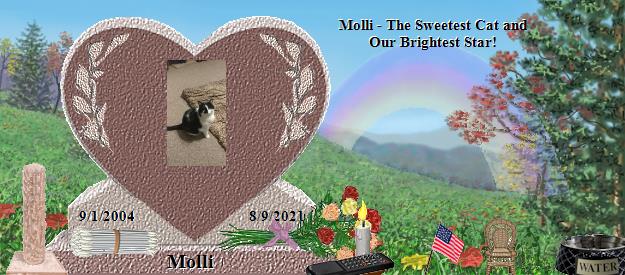 We will miss your special ' twirl'-when you meowed it sounded like a purr!! We loved how when you wanted more food you would put one paw out, then another and if you stood up, that meant we weren't moving fast enough! The way you waited for us to go downstairs. You were always patient going up/ the stairs when I broke my foot. You ALWAYS came to me when I would cry about Dusty!! You loved to kiss our noses and even pull our hair. You were SO patient. You let me dress you and do whatever for the holidays.You were always there to greet us in the morning and wait patiently while we got ready for bedtime. You dealt with that nasty C for 7 years and never waivered from the strong, sweet, special Kitty you are. We will take care of your Sister Fran. You will shine bright and we will look you, The Brightest Star. Sept. 1, 2021 Today would have been your 17th PURRthday. Molli ❤️💔 Sept. 9 will be one month. Elsa, my black and white Kitty went to the Bridge 11 years ago as well. The two of you looked alike and just the sweetest. Sept.25, 2021, National Daughter Day. I celebrated with Fran, but was not the same since you were not here...we talked about you and hope you are doing ok. |
