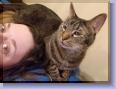 I got Monster in 2008 shortly after I moved back to Topeka, into my grandparents house, after going to college in Highland. He was one out of a few kittens left from a litter that was found abandoned, he already had the name Monster. He was a very spicy kitten. I remember friends being excited that I had a kitten and coming over to see him and giving the disclaimer that he was not your average kitten and that he was a bit spicy. He hissed and swatted a lot like a feral kitten. He would climb all over me too. He was fully declawed once he was old enough to be at the Animal Clinic of North Topeka and that was also his vet for most of his life. When I first got him my grandparents wanted him to stay in the room for a bit till he got bigger. When I would leave the room he would cry at the door for me. I remember one night I was in the living room playing my Wii and he was meowing a lot at the door for me. As a young kitten/cat he loved playing with plastic bags and wand toys but he wasn't very interested in many toys. He would sleep at my head and did this his whole life. Sometimes if he would see me open my eyes after sleeping, and then close them again, he would bat at my eyes. My grandma would like putting him on a leash and harness and taking him outside to lay in the sun. He liked laying on her lap a lot and getting petted. He would get on things he wasn't supposed to a lot when he was younger, one time he got on the TV and knocked over one of grandma's flower vases and it spilled water into the TV and fried it. He would also get on my dresser and chomped at a bunch of dried flowers I had there one time. When he was young he would join me in the bathroom when I would take showers and would climb onto the ledge of the tub in the shower. After I moved out whenever I would come visit, almost weekly, he would get zoomies as soon as he would see me. He loved smelling and rolling around on sandals. He's always loved getting into closets and laying in baskets. One time my grandma accidentally shut him in her closet and couldn't find him for a long time. He continued hiding in closets all of his life. I moved him from my grandparents house to live with me in 2015. He got out of the trailer several times but thankfully never got hurt and always came back. He liked going under the trailer and laying around. He never went far and there were multiple times he would sneak outside and someone would chase after him to bring him back. He loved laying around on his back with his belly up and legs spread, mostly in the sun. Sometimes he would bite and play with my hair. Sometimes he would get on the counters, one time I was eating toast and reading and he jumped up and started eating my toast. He would also lay in the dish drain. He liked laying in the hallway, a roommate one time got "stuck" in the hallway because he didn't know how to walk past Monster laying there. Monster would like to grab at people as they walked by. When one of my roommates was unpacking when she moved in, Monster came into her room and was playing in the hangers and got stuck in one and just laid there with it on him. Whenever I was doing something he would jump up onto the table and lay down and knock everything I was doing off, he loved doing this whenever I was making art. One of my roommates gave him a bath once. One time I got a little lion hood for him but he did not like wearing it. Shortly after moving him out of my grandmas he stopped wearing his collar, he would take it off so I stopped trying to keep it on. In 2017 he went to Stone House Animal Hospital for an emergency appointment because of a kidney/bladder infection, that was his one and only emergency visit until the cancer. He loved head scratches, behind the ear, on his cheek, and his chin. I would cup his head and scratch his cheek and he would lean into my hand and rub his head. He loved waking me up if I wasn't awake when he wanted me to be so he would get obnoxious until I would get up. One time he really wanted me to wake up and feed him so he brought me his food scoop. He eventually bit it up to where it wasn't usable. One 4th of July he got out and I was so worried about him being outside because of the fireworks but I found him later just curled up and laying on van seats that he had sitting in the yard. Flea collars and drops would cause him to loose fur so he'd get bald patches around his neck from them. I found Blonders a month before I moved out of the trailer, he was very put off by Blonders and stayed away from him for a long time but eventually they coexisted. They never got to cuddle status but they would lay next to each other. Because he was declawed sometimes he would rub the fur from his temples from scratching too much. He was always a very clean kitty and groomed himself a lot, he had very soft fur, softer than any other cat I've known. Moved into a new house in 2017 and he actually loved using the stairs and would go up and down the stairs multiple times a day. He liked hanging out by the top of the stairs and reaching out with his paw and batting you coming up the stairs. He did sneak into the attic once and I had to catch him, he also snuck into the basement at least once and the garage a few times. He would sometimes lay in the bathroom sink both down stairs and upstairs. He couldn't open doors well because he was declawed but Blonders could and would open closet doors for him so he could go in and hide. He would also sneak into the roommates room and hide under the bed or in clothes. He was a picky eater but did like tuna, sausage, and the random surprise food like toast. He was such a smart kitty, when I would try and play with him using a laser pointer he would eventually just go after my hand that was holding the laser. It was also very hard for him to take pills, he would hide them in his mouth and then spit them out later. He would also eat around them in food and not eat treats with pills in them. He didn't warm up enough to every