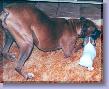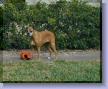 Nikki came to Annette from a neglectful home at the age of six months. She regained her confidence once she was in a loving home. Thanks to police dog training, she overcame her fears and became a big dog. She was also a calendar girl. Her tombstone picture is from her calendar picture for March 2004. Nikki loved everyone, people and dogs alike. She especially loved Elio the UPS delivery man. Everyday when she heard his truck driving up the street she would run to the door. On two occasions she tried to climb into his truck to ride with him. She immediately adopted Haggis, one of the Jack Russel puppies born to Maggie. It was so funny to see this massive 60 pound dog playing with this little puppy. Her favorite game was keep away, but she used to let Haggis win. The picture below tells it all, they are playing with a small green frog toy. Haggis loved her as much as his own mother and continued to look for her the rest of his life after she had crossed over. Before Annette got her, she had a bad experience in a lake where she almost drowned, making her fearful of water. When we moved to our new house she began pulling coconuts from the edge of the lake and shredding them. She eventually overcame her fear of water enough to wade into the lake up to her neck to grab floating coconuts. She taught Grafin, our Belgian Malinois to hunt and destroy coconuts, which she continued to do the rest of her life We used to play tug of war with her rope toy until I had to release it before she pulled my arm out of its socket. She then stood guard over it waiting for me to try to grab it which caused her to immediately grab it before I could. The tug of war started again until I let go, and the whole cycle started over. Boxes delivered to our house were doomed. All I had to do was make one small lunge with the box, no matter how big it was, and she grabbed on and tried to rip it from my grip. Almost every box delivered to our house entered the front door with one or more edges ripped and shredded. She replaced my alarm clock. Every morning, about five minutes before the alarm went off, she came over and jammed that big sloppy nose of hers into my side and stood there with her head on the edge of the bed waiting for me to get up. We miss you so much Nikki. I think about you regularly and remember the good times we had together. I know you have made lots of friends on the other side of the bridge. |